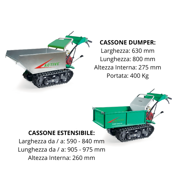 Motocarriola Active Power Track 1400 da 400 Kg di portata effettiva.