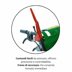 i comandi sono facili da azionare e intuitivi. Si trovano tutti vicini allโoperatore e sono facilmente a cominciare dalla levetta rossa di attivazione del motore e la leva piรน grande che funge dayรฒ